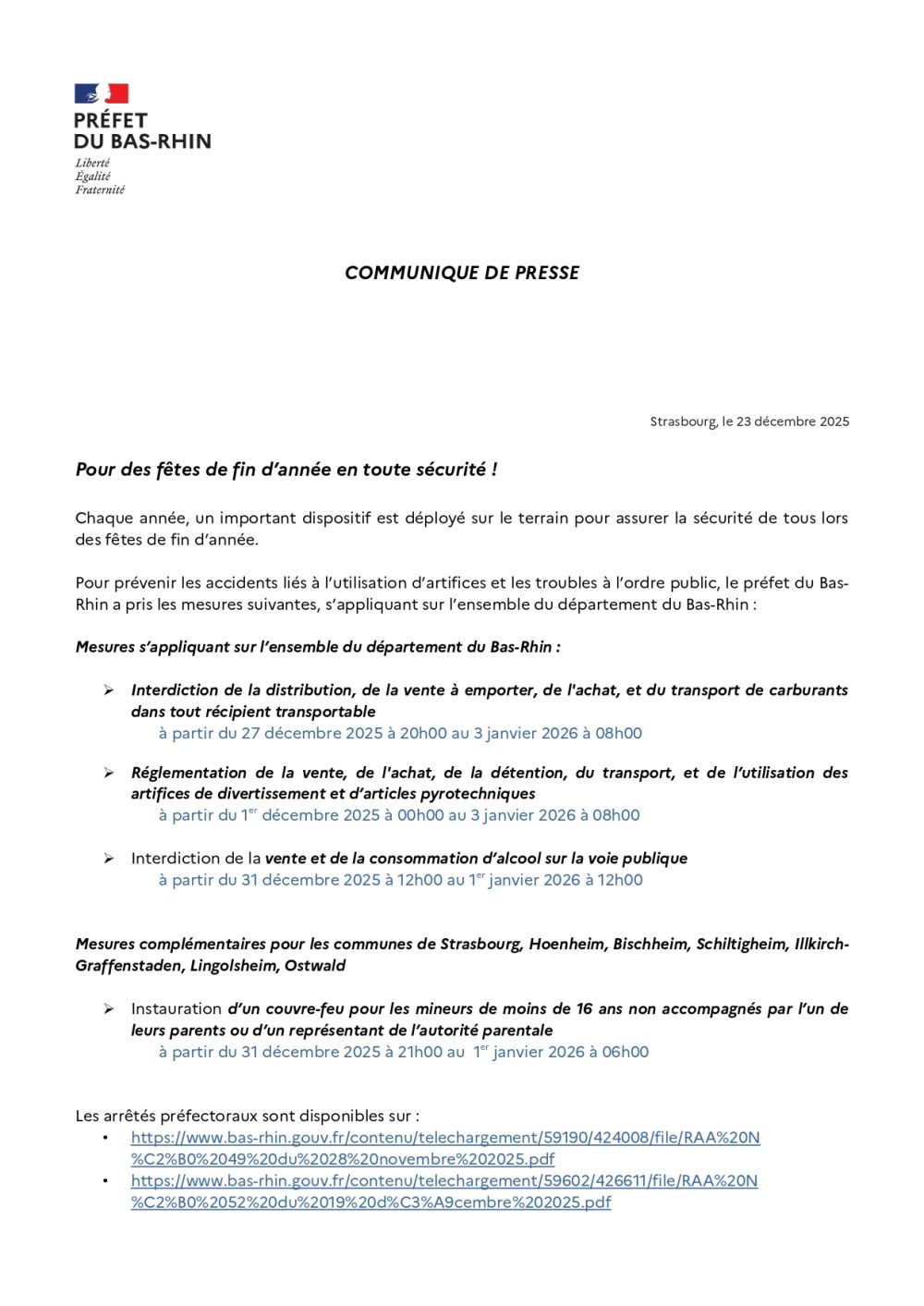 Communiqué de presse - Pour des fêtes de fin d'année en toute sécurité !