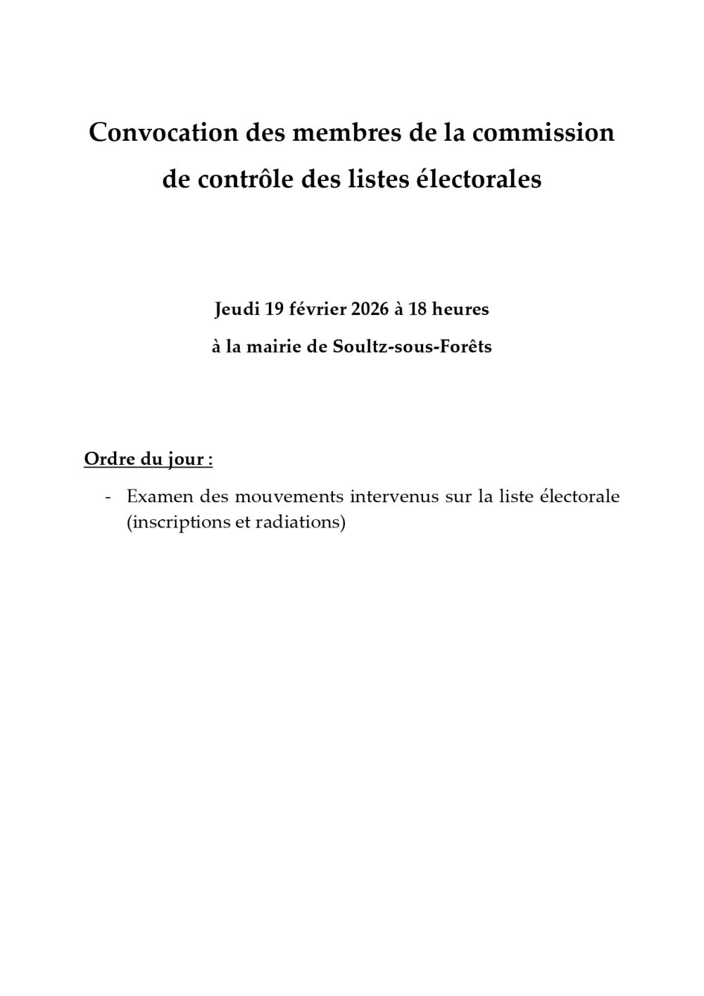 Convocation des membres de la commission de contrôle des listes éléctorales