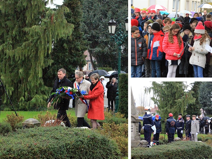 Comme il est de tradition, la cérémonie s'est déroulée en cinq temps : une introduction avec une marche militaire interprétée par les harmonies de Wissembourg et de Soultz-sous-Forêts et un poème récité par des enfants de l'école élémentaire, la lecture du message de la Secrétaire d'Etat auprès de la Ministre de la Défense, le dépôt de gerbes par les élus et les JSP suivi par la sonnerie aux morts et la Marseillaise, la salutation des porte-drapeaux et l'interprétation de l'hymne européen par les enfants de l'école élémentaire, et le discours de clôture du Maire.