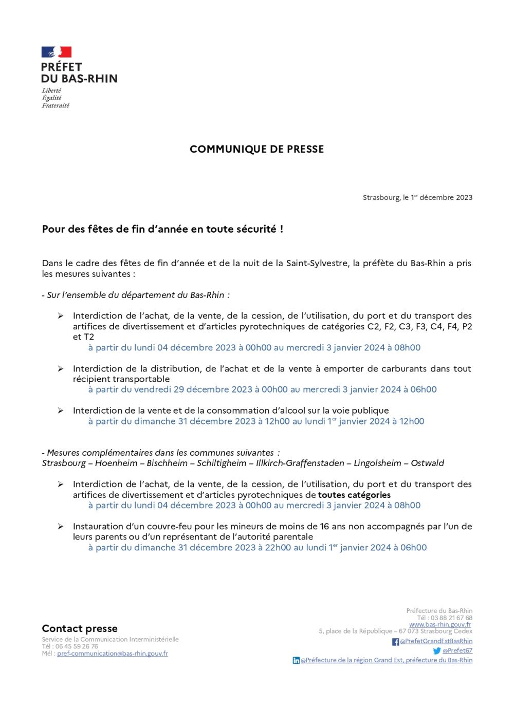 Communiqué de presse - Pour des fêtes de fin d'année en toute sécurité !