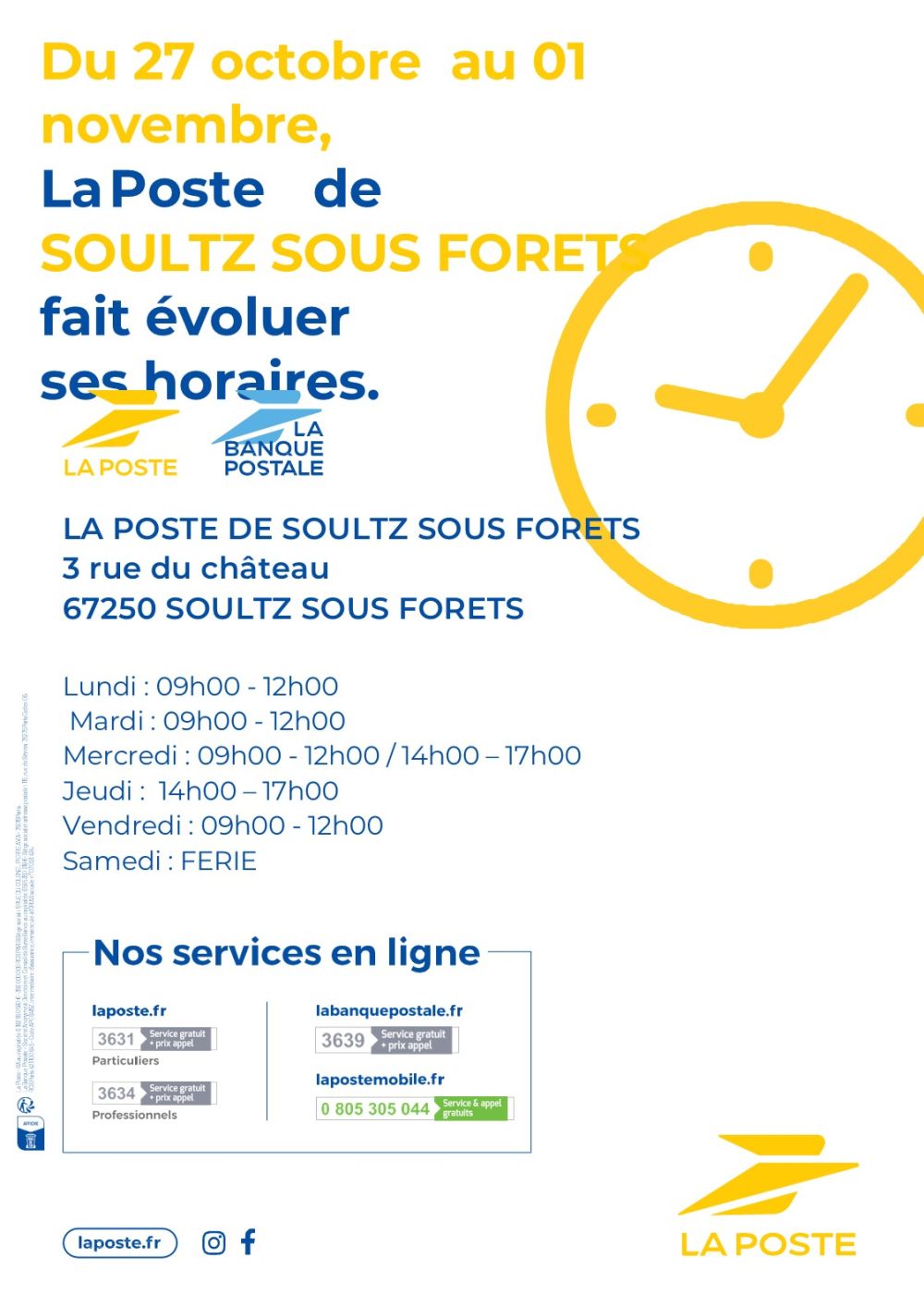 Horaires d'ouverture du bureau de poste de Soultz-sous-Forêts